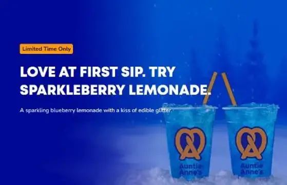 A sparkling blueberry lemonade with a kiss of edible glitter. Try it now!